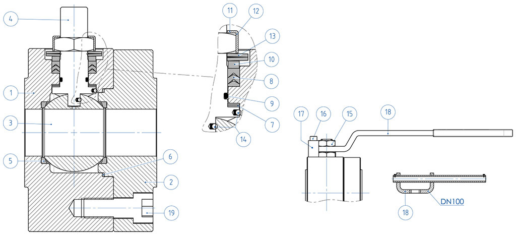 1. Dispositivo antiestático (continuidad eléctrica entre la bola, el vástago y el cuerpo)